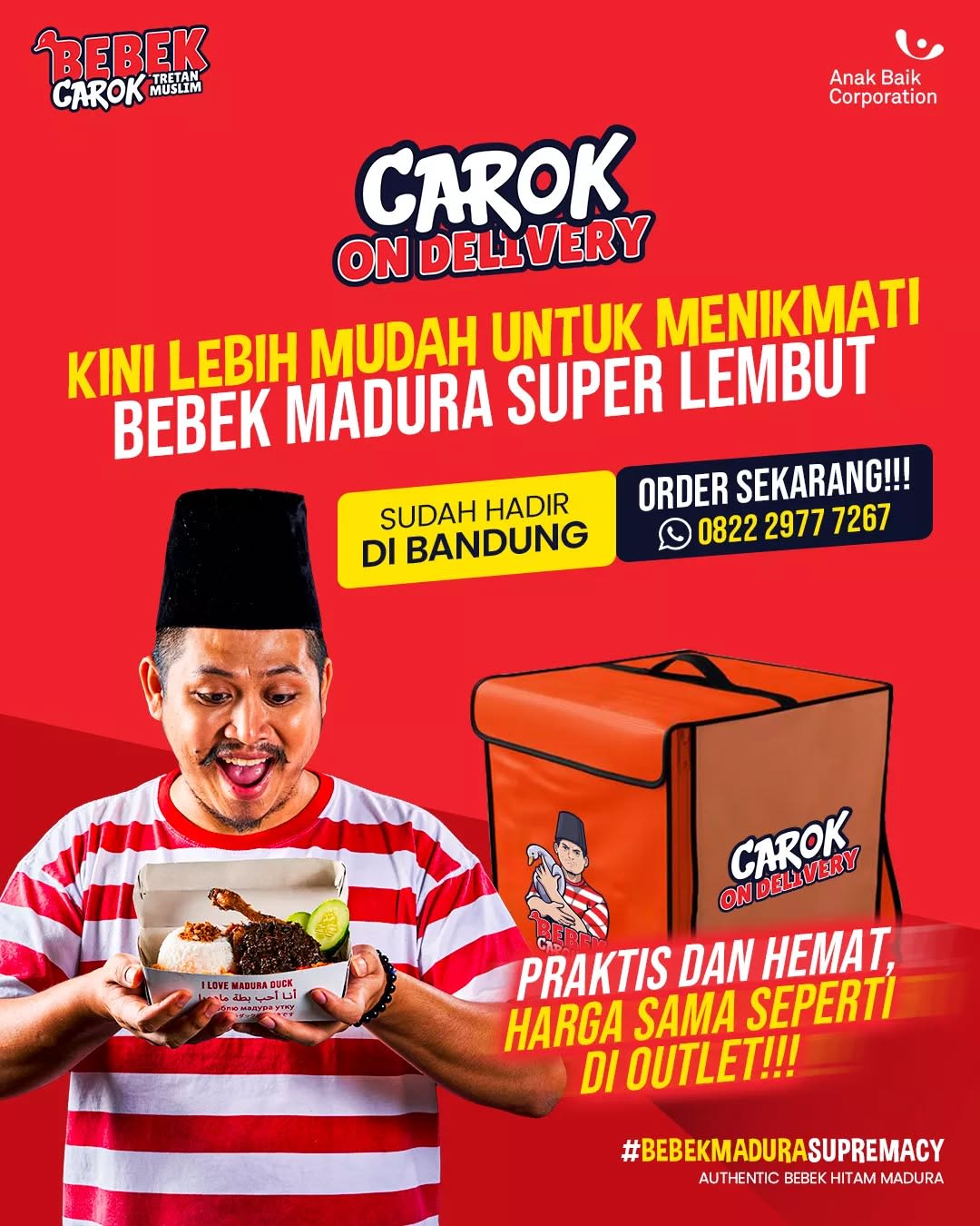 Bebek Carok Bandung adalah usaha kuliner yang diprakarsai oleh Tretan Muslim, seorang komedian dan kreator konten asal Indonesia. Terinspirasi oleh kekayaan cita rasa Nusantara, khususnya dari daerah Madura, Tretan Muslim menghadirkan Bebek Carok sebagai sebuah restoran yang mengedepankan hidangan bebek dengan bumbu tradisional dan rempah-rempah autentik.
